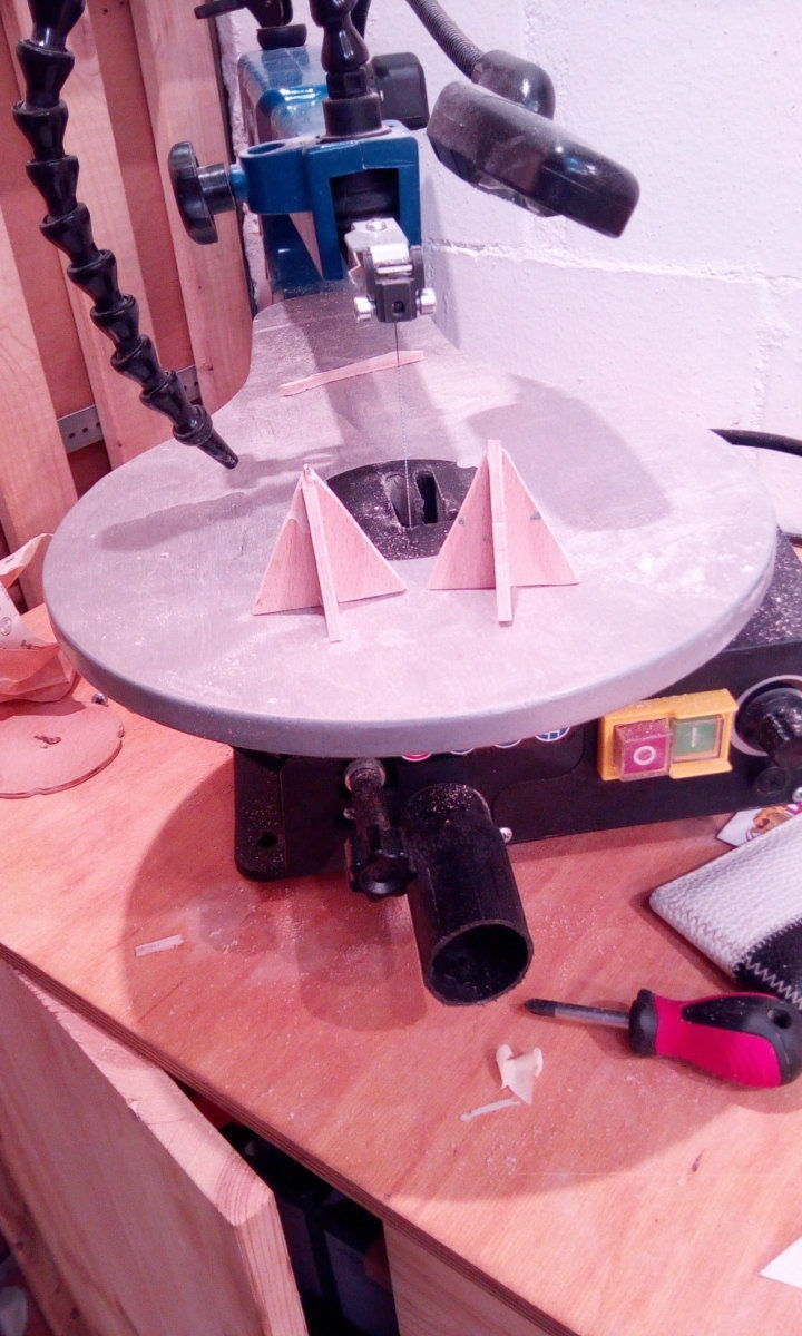 Da meine Frau Malt und immer das Papier der Unterlage an geklebt ist beim Kanten anmalen habe ich ihr einfache Malerspitzen aus 4 mm Sperrholz gemacht die Teile sind 47 mm hoch und unten 46 mm breit